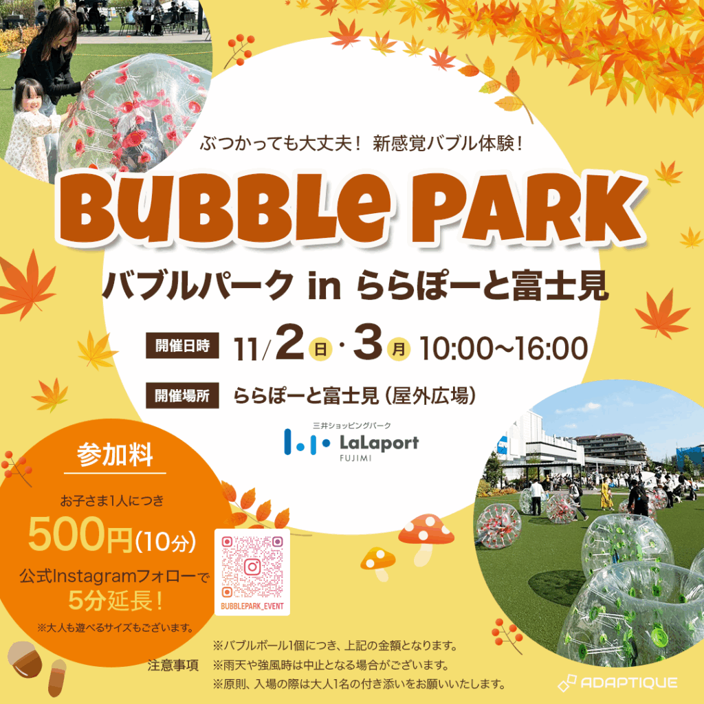 2025年11月2日〜3日|「Bubble Park(バブルパーク)in ららぽーと富士見」開催のお知らせ